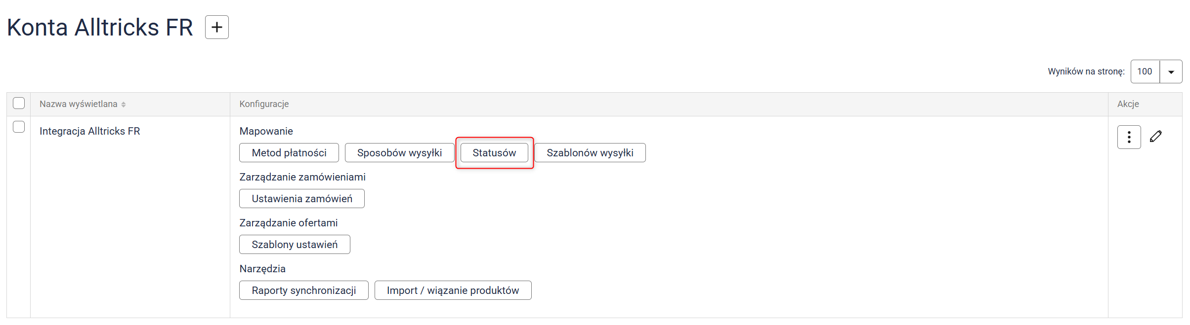 Kliknij przycisk Mapowanie statusów i przypisz statusy z Sellasist do statusów w Alltricks FR.