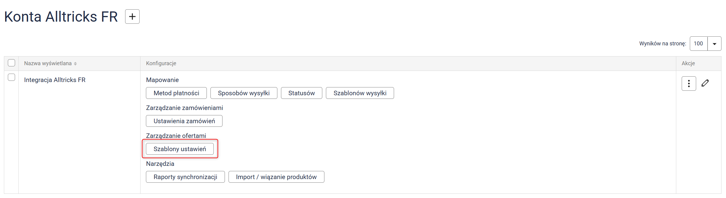 Uwaga: Oferty zostaną zsynchronizowane tylko wtedy, gdy w szablonie ustawień (krok 4) włączyłeś synchronizację stanów magazynowych oraz posiadasz przynajmniej jedną ofertę na Alltricks FR. Głównym źródłem stanów magazynowych i cen są produkty. Jeśli w systemie znajdują się importowane oferty powiązane z produktem, ich wartości zostaną wyrównane do danych zapisanych w produkcie — i w ofercie Sellasist, i w ofercie integracji.