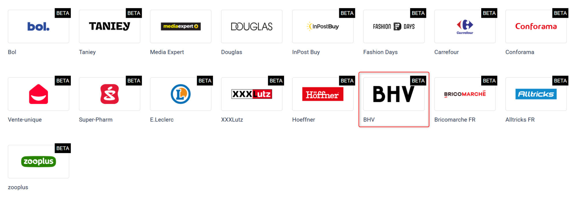 1. Przejdź do Integracje → Dodaj nową integrację i w sekcji Marketplace wybierz BHV.