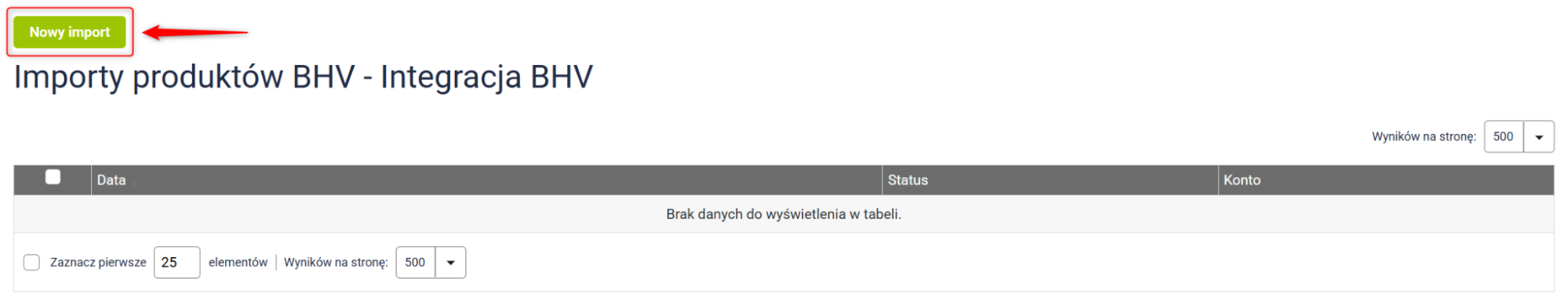 1. Na karcie importów kliknij przycisk Nowy import.
