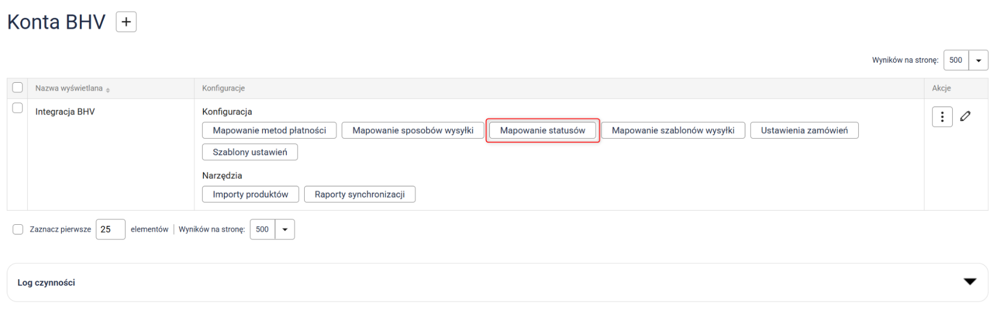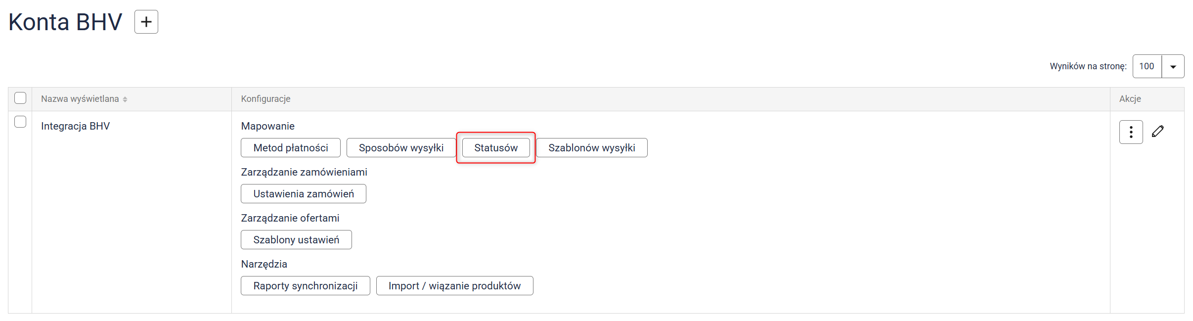 Kliknij przycisk Mapowanie statusów i przypisz statusy z Sellasist do statusów w BHV.