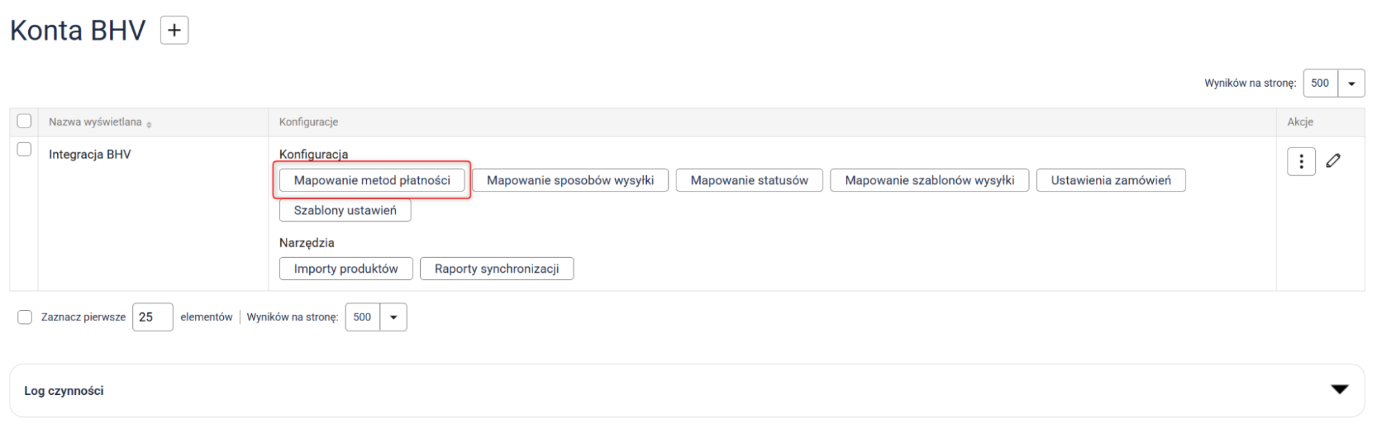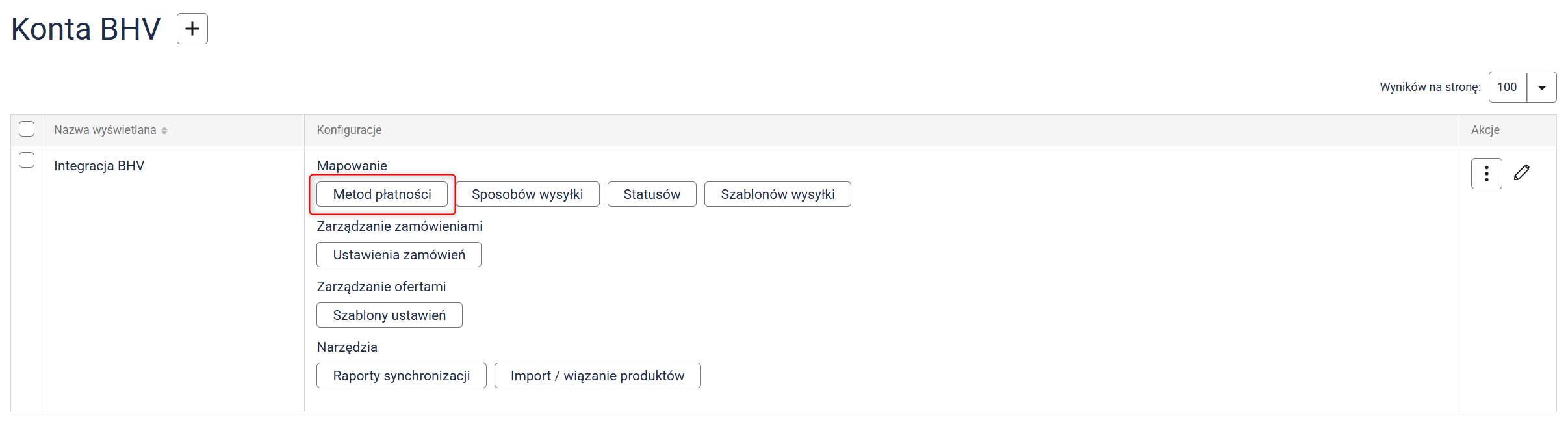 Kliknij przycisk Mapowanie metod płatności i przypisz metody płatności z Sellasist do odpowiadających im metod w BHV.