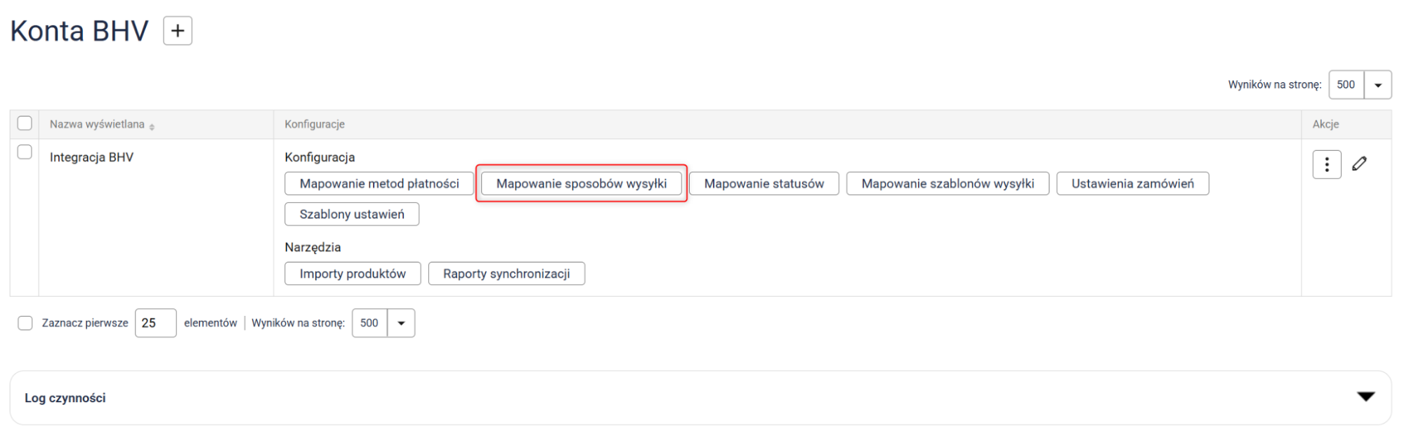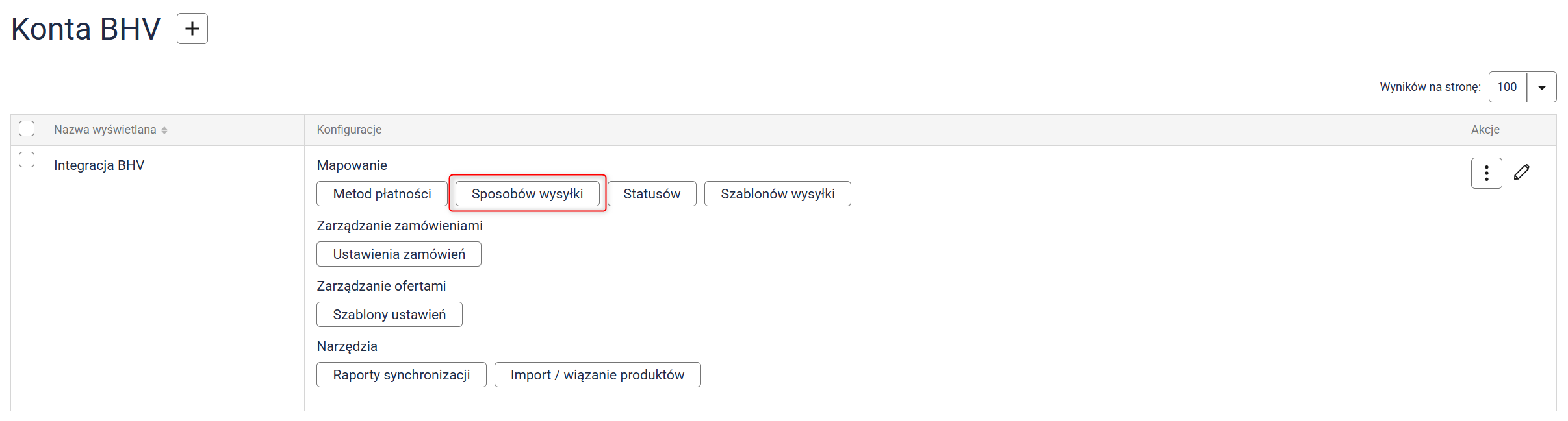 Kliknij przycisk Mapowanie sposobów wysyłki i przypisz wybrane przez siebie sposoby wysyłki z Sellasist do metod wysyłki w BHV.