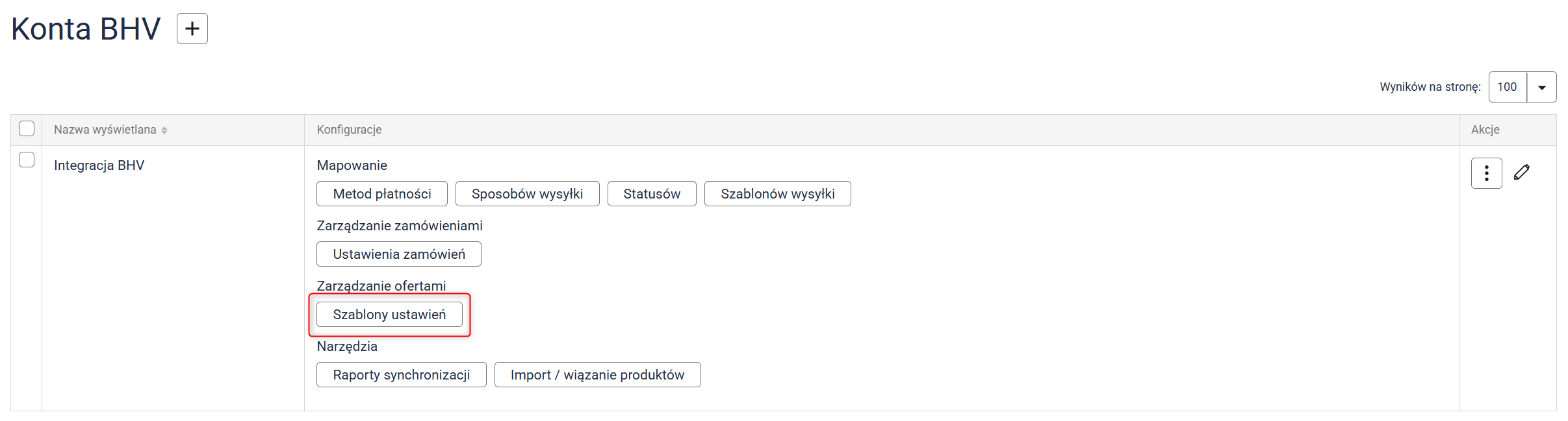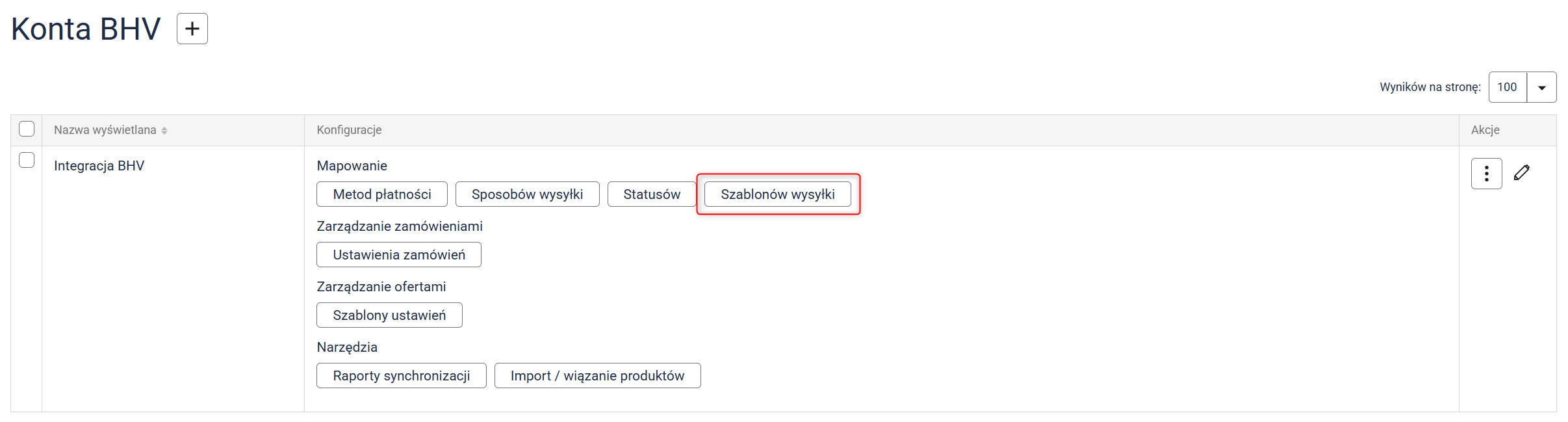 Kliknij przycisk Mapowanie szablonów wysyłki i przypisz szablony wysyłki z Sellasist do szablonów w BHV.