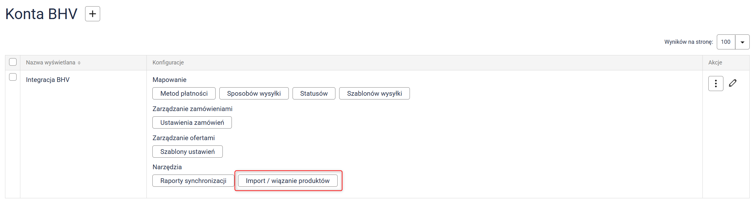 Jeśli w Sellasist brakuje produktów dostępnych na koncie BHV, system automatycznie je utworzy i powiąże. Import produktów pobiera wszystkie pozycje — w przypadku znalezienia powiązań łączy je z istniejącymi produktami; w przeciwnym razie tworzy nowe produkty i wiąże je pomiędzy platformami.