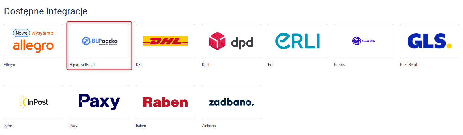 2. Z listy dostępnych integracji kurierskich wybierz BLPaczka (Beta).