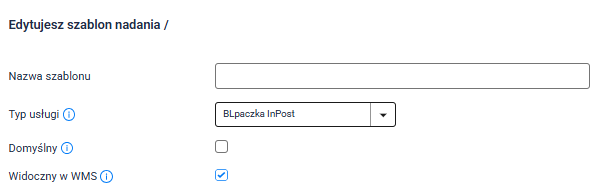 Wskazówka: Każdy szablon utworzony w tej integracji będzie automatycznie dostępny na pozostałych kontach. Jeśli chcesz, możesz utworzyć osobne szablony nadania dla każdego konta BLPaczka.