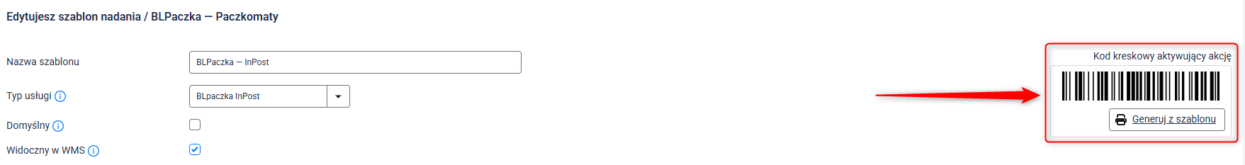 5. Po zapisaniu szablonu, w górnej sekcji pojawi się unikalny kod kreskowy.