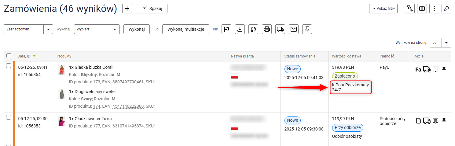 5. Od teraz łatwo zidentyfikujesz wybraną metodę dostawy przy konkretnym zamówieniu.