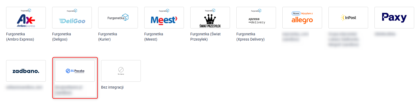 2. Z listy integracji wybierz BLPaczka.