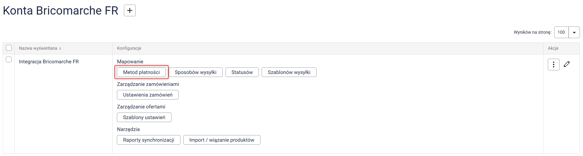 Kliknij przycisk Mapowanie metod płatności i przypisz metody płatności z Sellasist do odpowiadających im metod w Bricomarche FR.