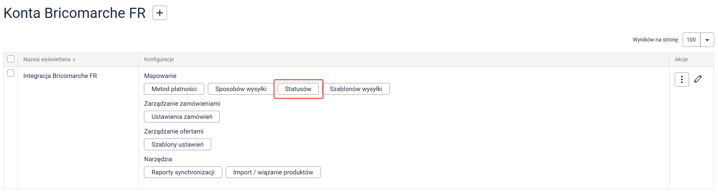 Kliknij przycisk Mapowanie statusów i przypisz statusy z Sellasist do statusów w Bricomarche FR.