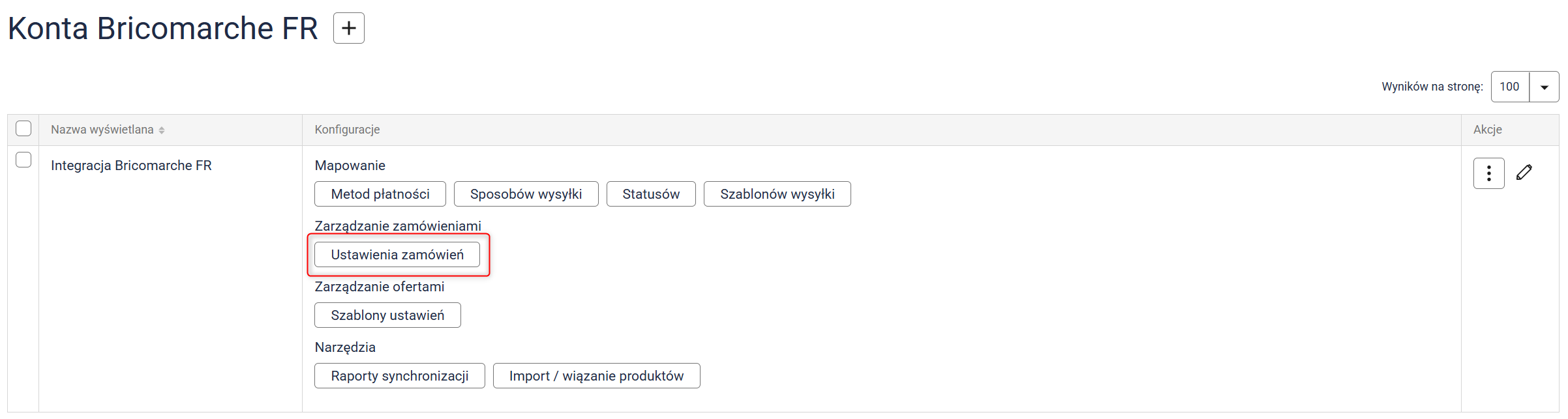 Sekcja: Ustawienia integracji