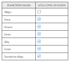 Uwaga: Aby wysyłać powiadomienia dla zamówień pochodzących z Allegro czy innych marketplace lub zewnętrznych sklepów, konieczne jest zaznaczenie checkboxa danej usługi.