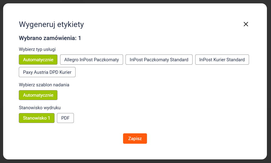 Wybierasz wiele zamówień jednocześnie i uruchamiasz proces generowania przesyłek, co oszczędza czas przy obsłudze dużej liczby zamówień.