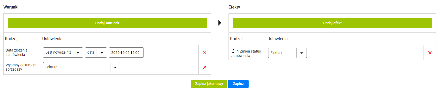 Aby utworzyć kopię danej akcji przejdź do Administracja ⇨ Automatyzacja ⇨ edycja wybranej akcji automatycznej (lub Zamówienia ⇨Akcje automatyczne⇨ edycja wybranej akcji automatycznej), którą chcesz skopiować. Klikając Zapisz jako nowy - utworzysz jej kopię.