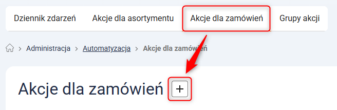 1. W zakładce Administracja ⇨ Automatyzacja i przejdź do sekcji Akcje dla zamówień.