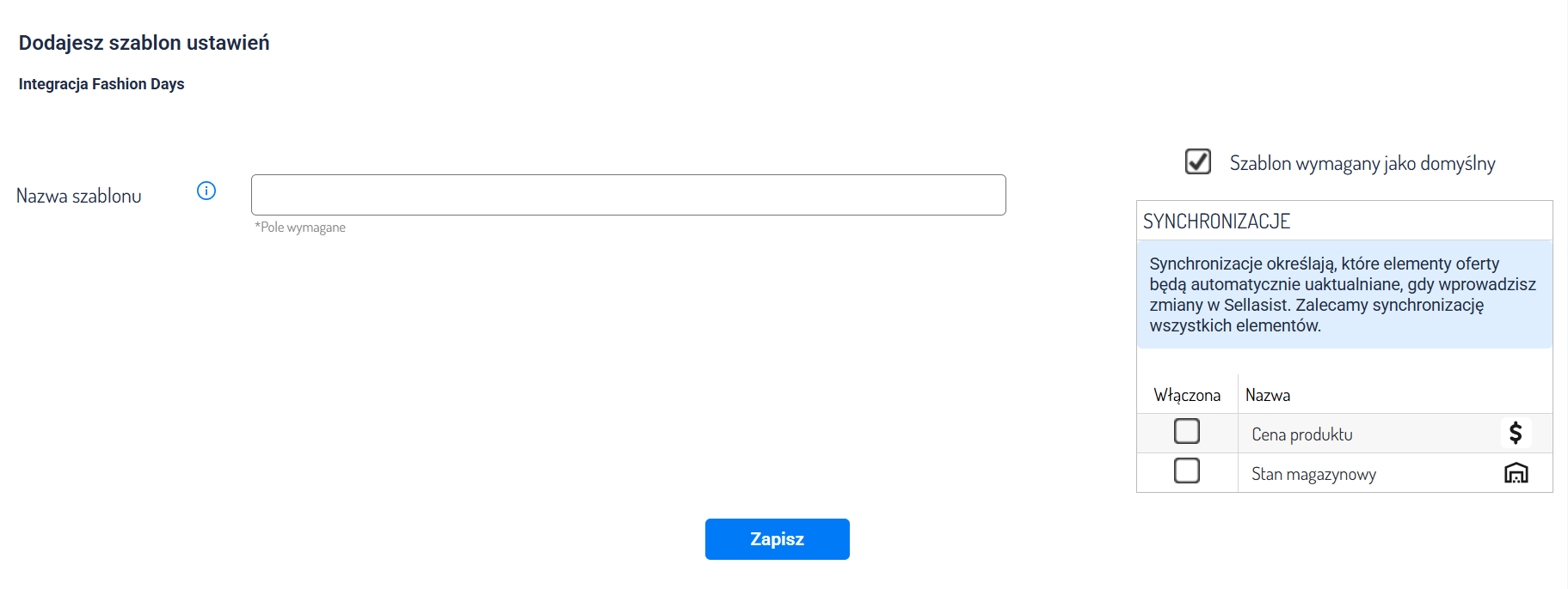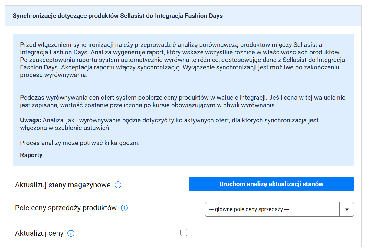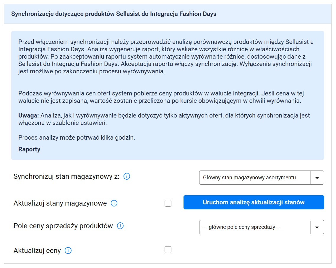 Uwaga: Synchronizacja działa wyłącznie w kierunku Sellasist → Fashion Days.