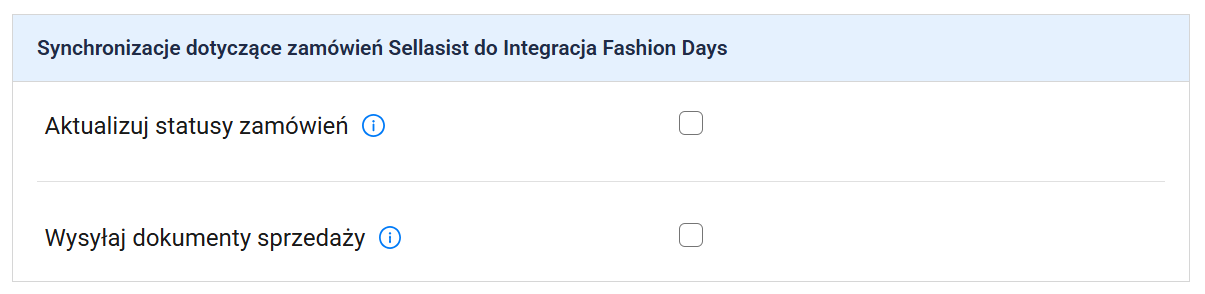 Sekcja: Synchronizacje dotyczące zamówień Sellasist do konta Fashion Days