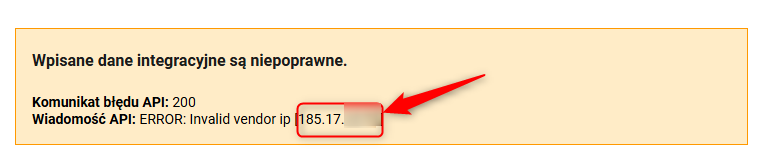 Wskazówka: Jeśli próba zapisania ustawień zakończy się informacją o nieprawidłowym adresie IP, zaloguj się na swoje konto Fashion Days i przejdź do Moje konto → Profil → Szczegóły techniczne → ID partnera → Dodaj nowy adres IP. W tym miejscu dodaj adres IP wyświetlony w komunikacie (screen poniżej).