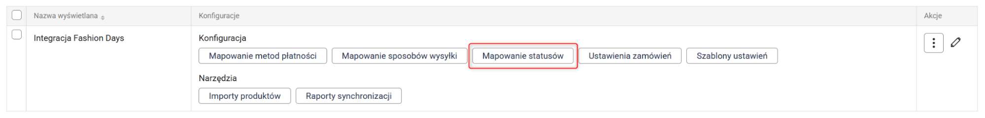 Kliknij przycisk Mapowanie statusów i przypisz statusy z Sellasist do statusów w Fashion Days.