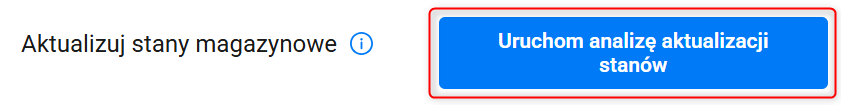 1. Aby uruchomić analizę, kliknij przycisk Uruchom analizę aktualizacji stanów. W zależności od ilości produktów i złożoności danych, proces może potrwać do kilku godzin.