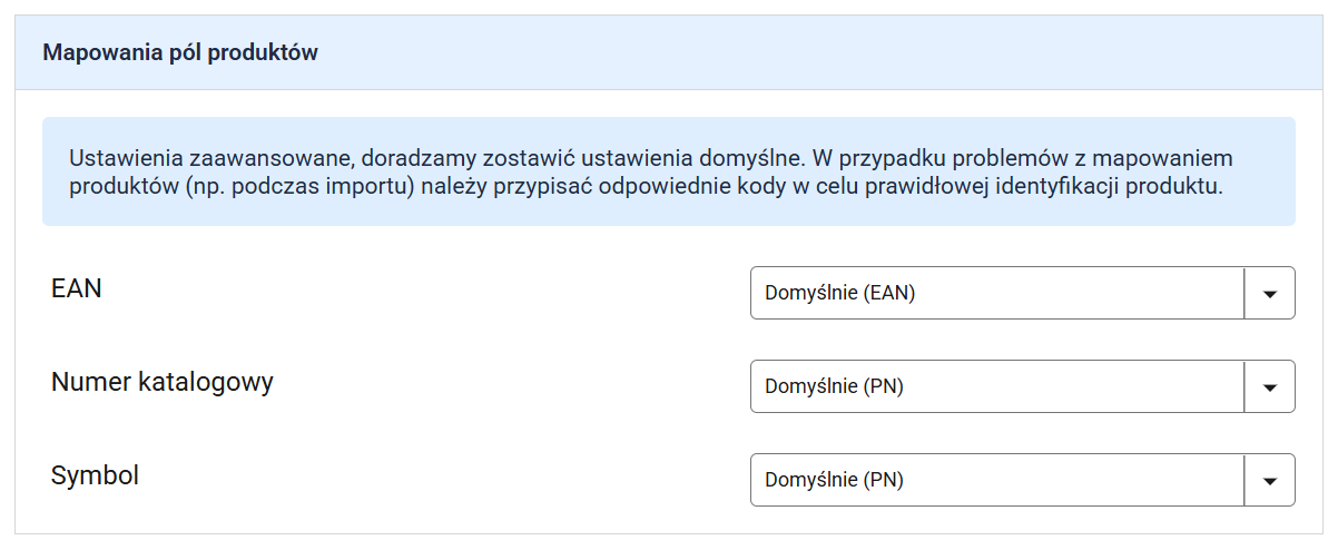 Uwaga: System będzie identyfikował produkty zgodnie z ustawieniami w sekcji mapowań pól produktów (krok 2). Jeśli zmieniłeś ustawienia domyślne mapowania, uwzględnij zmiany także w tym miejscu.