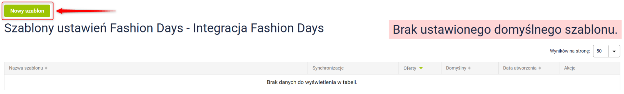 Uwaga: Ten krok jest wymagany przed uruchomieniem importu. Jeśli nie skonfigurujesz przynajmniej jednego szablonu oznaczonego jako Domyślny, import ofert nie będzie możliwy. Szablon domyślny jest automatycznie przypisywany do nowych ofert i aktualizuje ich ustawienia synchronizacji zgodnie z własną konfiguracją.