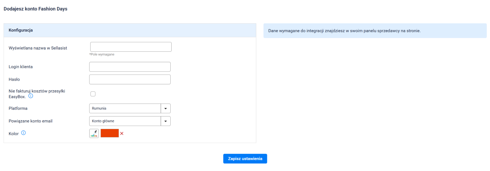 Sekcja: Synchronizacja konta Fashion Days do Sellasist (pobieranie zamówień)