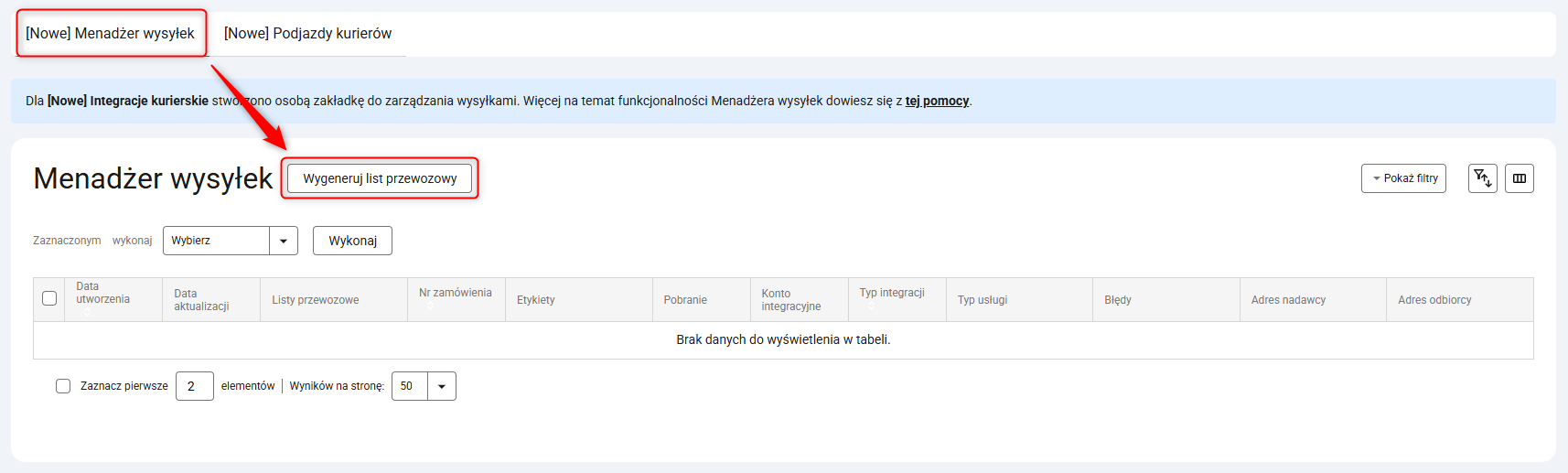 1. List przewozowy wygenerujesz z poziomu Zamówienia → [Nowe] Menedżer wysyłek → Przycisk Wygeneruj list przewozowy.