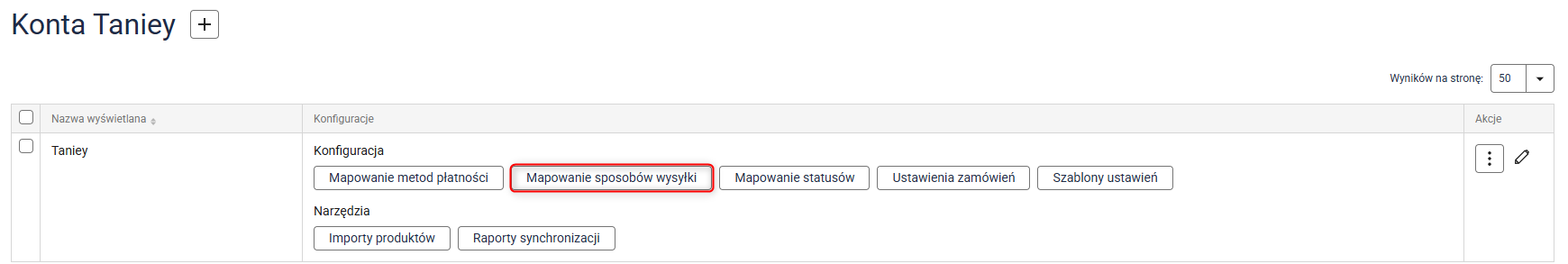 Kliknij przycisk Mapowanie sposobów wysyłki i przypisz wybrany przez siebie sposób wysyłki z Sellasist do metody wysyłki w Taniey.