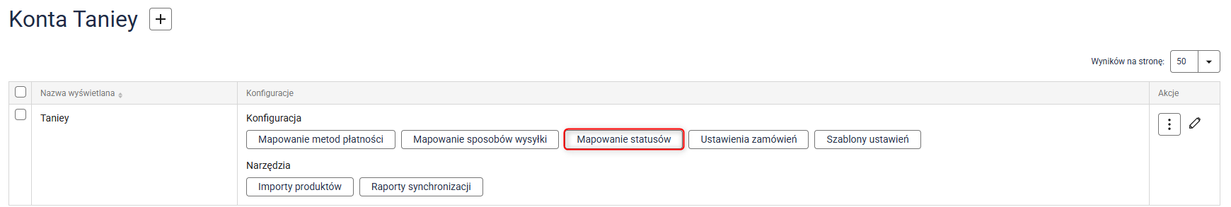 Kliknij przycisk Mapowanie statusów i przypisz wybrany przez siebie statusy z Sellasist do statusów w Taniey.