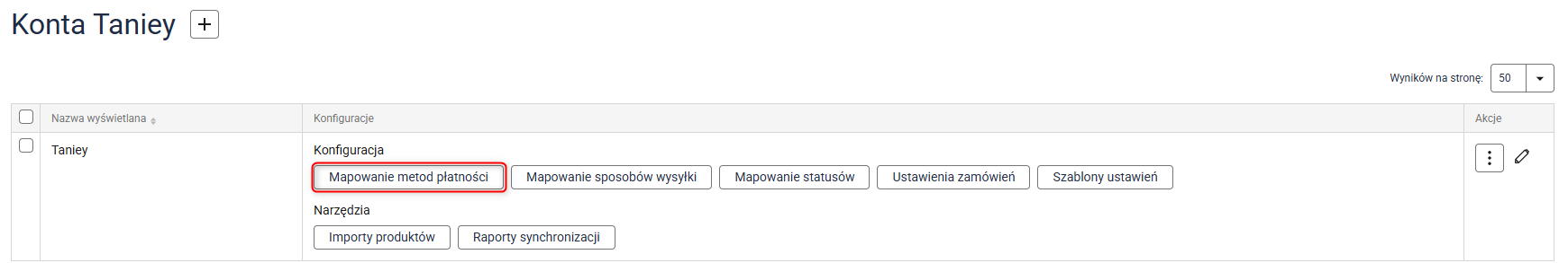 Kliknij przycisk Mapowanie metod płatności i przypisz metody płatności z Sellasist do odpowiadających im metod w Taniey.