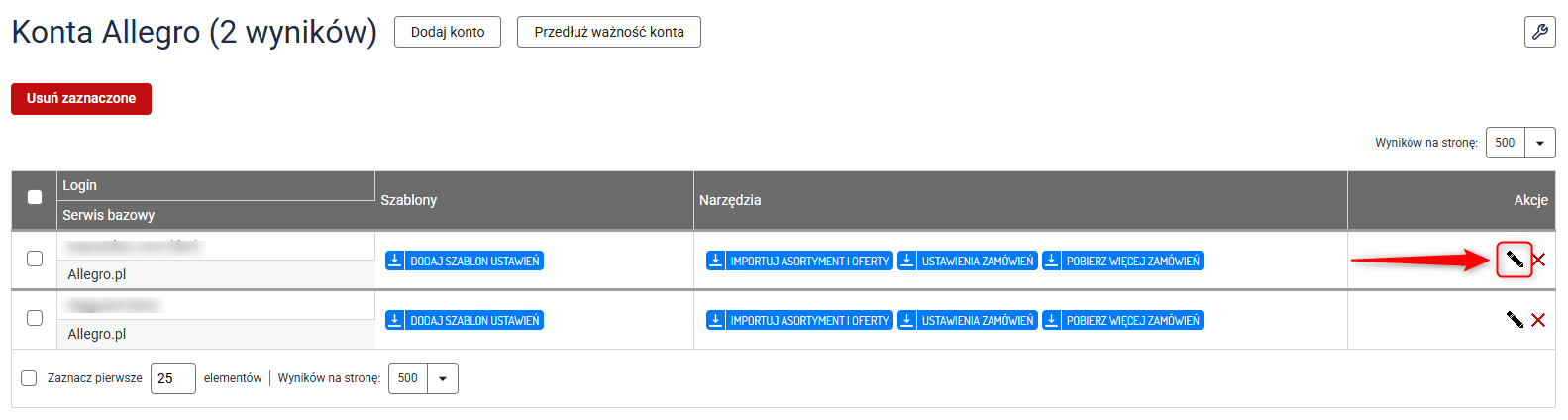 1. Przejdź do Integracje → Allegro → Edycja wybranego konta.