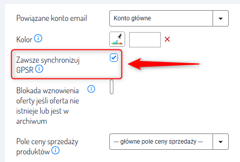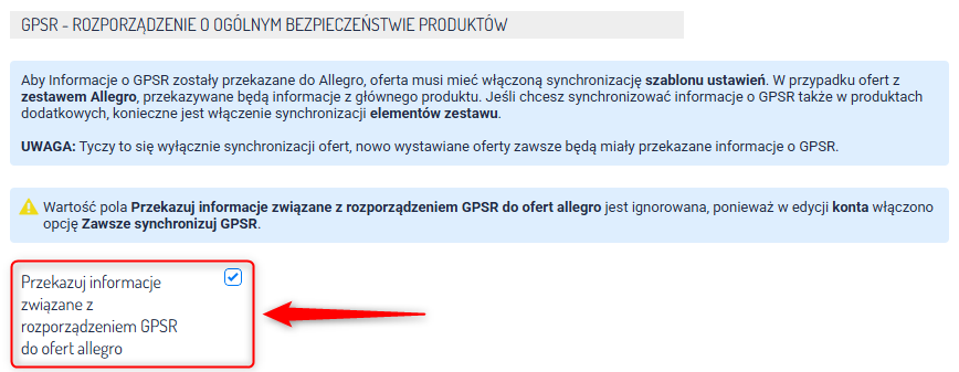 - Przez włączenie opcji Zawsze synchronizuj GPSR w edycji konta Allegro