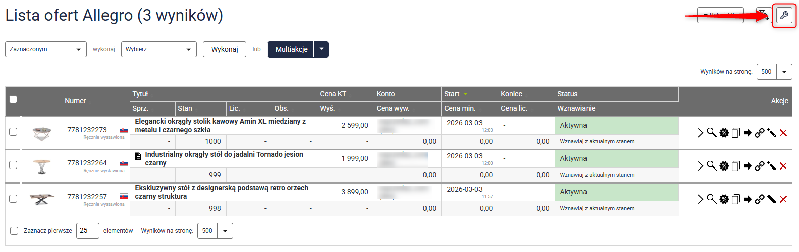 Sposób 3: Akcja masowa na liście ofert