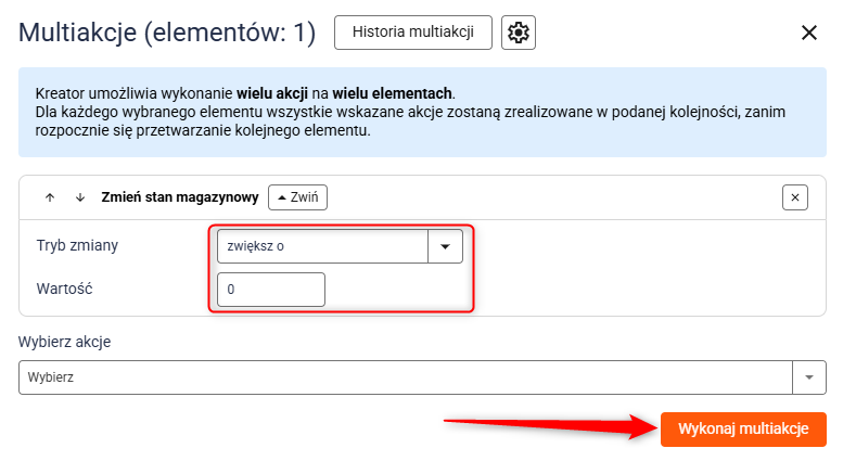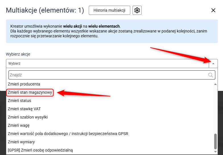 5. Wybierz Zmień stan magazynowy.