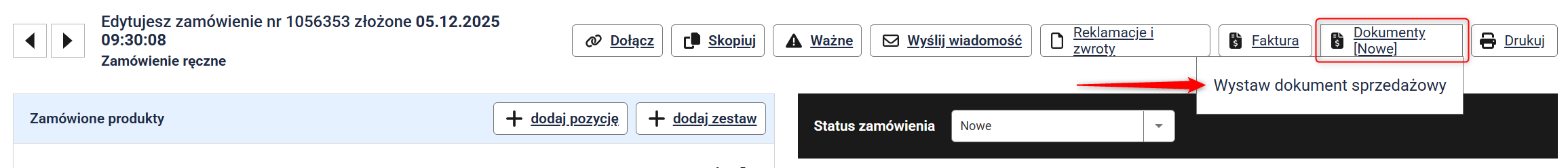 2. Edytuj zamówienie, do którego chcesz wystawić paragon.