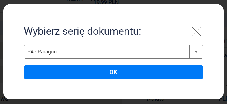 4. Wybierz z listy odpowiednią serię dokumentu i zatwierdź wybór.