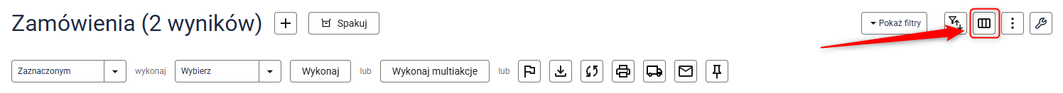 Kod kreskowy zamówienia możesz ustawić na liście zamówień:1. Z zakładki Zamówienia wybierz Zamówienia.2. Kliknij Wybierz Kolumny.