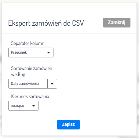 4. Skonfiguruj eksport według własnych potrzeb i kliknij przycisk Zapisz.