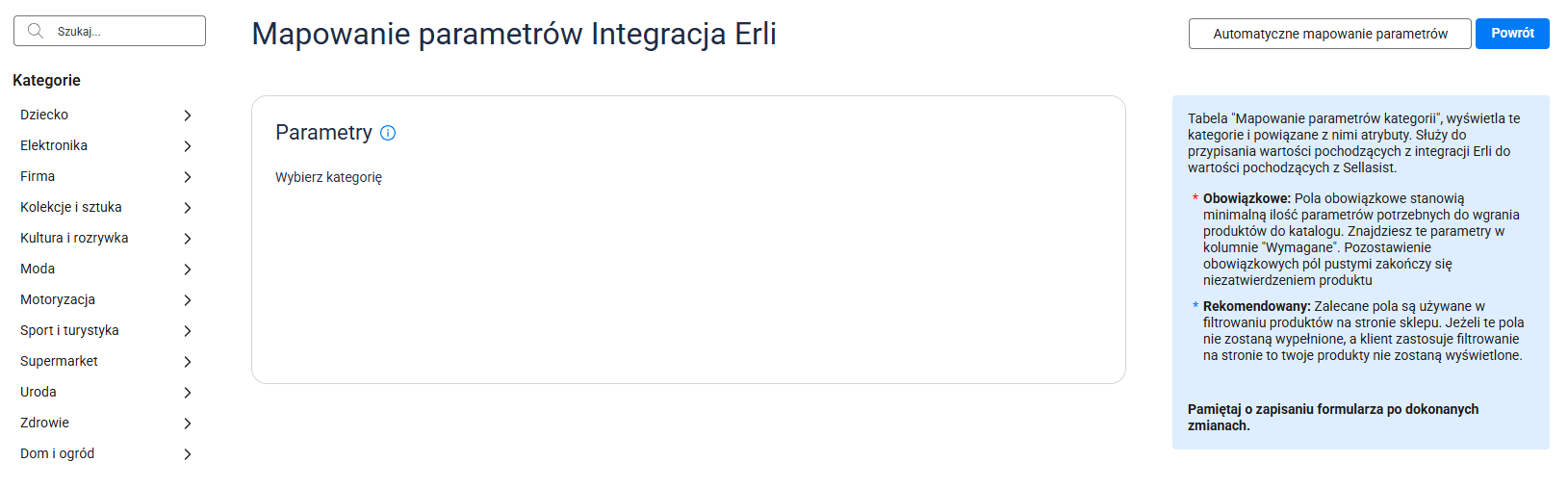 Wskazówka: Parametry zmapujesz, przechodząc do Integracje → Erli → Mapowanie parametrów (screen poniżej).
