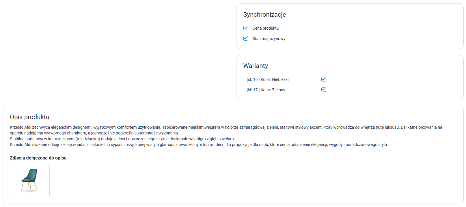 W tej sekcji włączysz lub wyłączysz synchronizację konkretnych elementów oferty — takich jak cena czy stan magazynowy produktu.