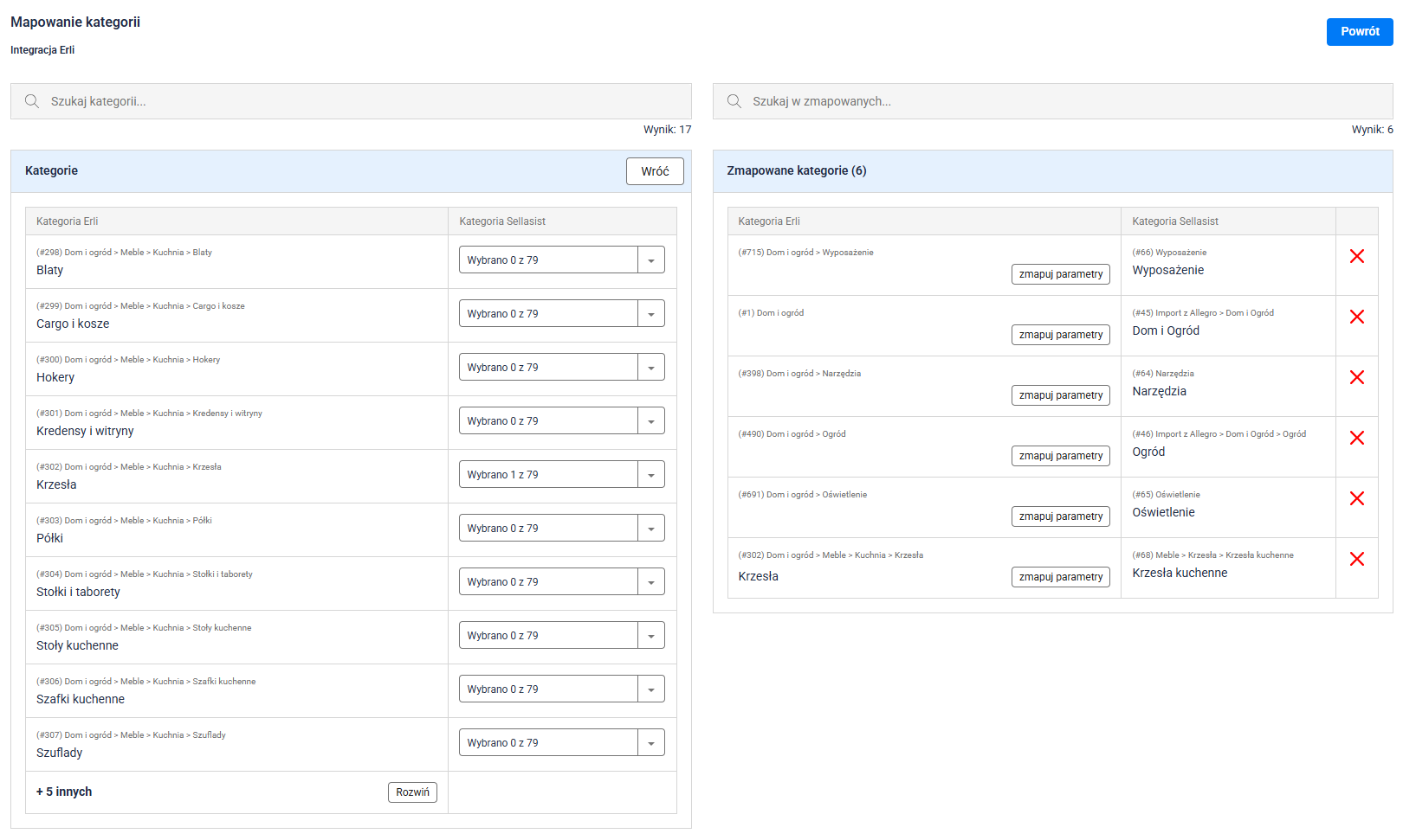 Wskazówka: Kategorie zmapujesz, przechodząc do Integracje → Erli → Mapowanie kategorii (screen poniżej).
