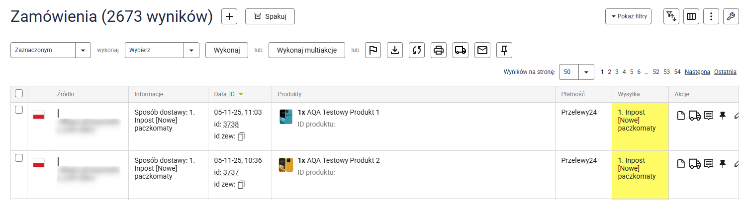Zamówienia oznaczone, jako InPost w sposobie wysyłki mają nazwę: