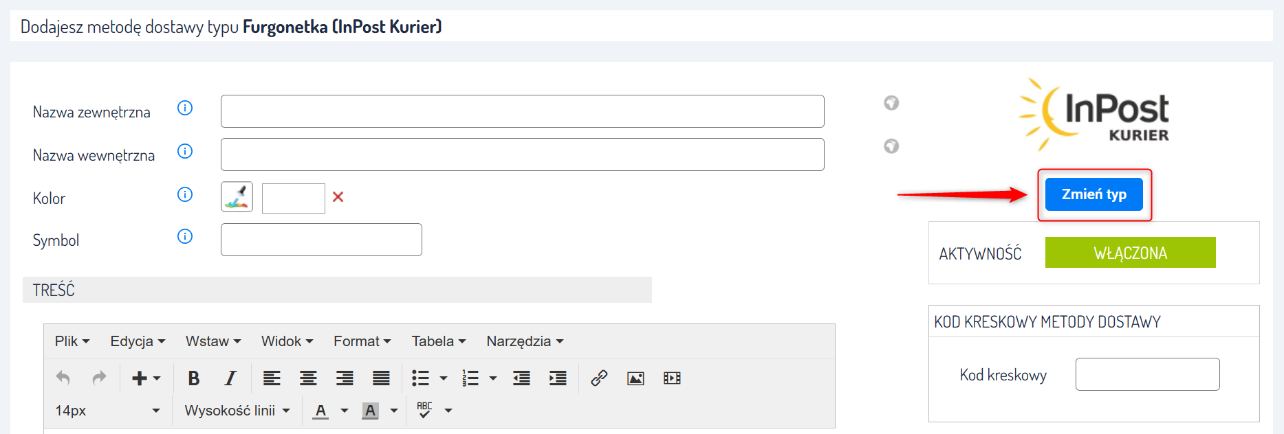 Jeżeli chcesz by w edycji zamówienia pojawiała się nazwa konkretnej usługi InPost Paczkomaty Standard lub InPost Kurier Standard musisz utworzyć metody dostawy.