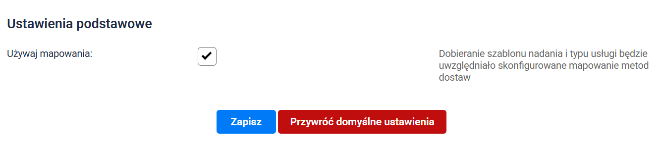 Po włączeniu mapowania, dobieranie szablonu nadania i typu usługi będzie uwzględniało skonfigurowane mapowanie metod dostaw. Dzięki tej opcji skonfigurowane wcześniej metody dostawy będą mogły być używane w nowej integracji z InPost
