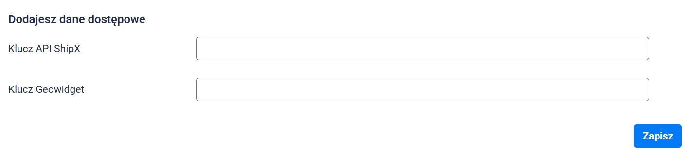 Klucz API ShipX – klucz znajdziesz w swoim panelu InPost. Klucz jest wymagany. Klucz Geowidget – klucz znajdziesz w swoim panelu InPost. Klucz nie jest wymagany, ale dzięki niemu w karcie zamówienia znajdziesz przycisk do wyświetlania np. paczkomatu, który został wybrany w zamówieniu.