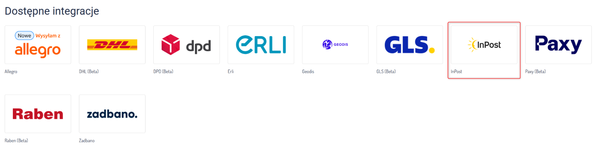 Jeśli chcesz korzystać z usług InPost dla zamówień z Allegro poza Wysyłam z Allegro skonfiguruj nową integrację InPost. Nowa integracja zastępuje dotychczasową metodę dostawy API Shipx Allegro i została przygotowana tak, aby proces dobierania metody odbywał się bezobsługowo