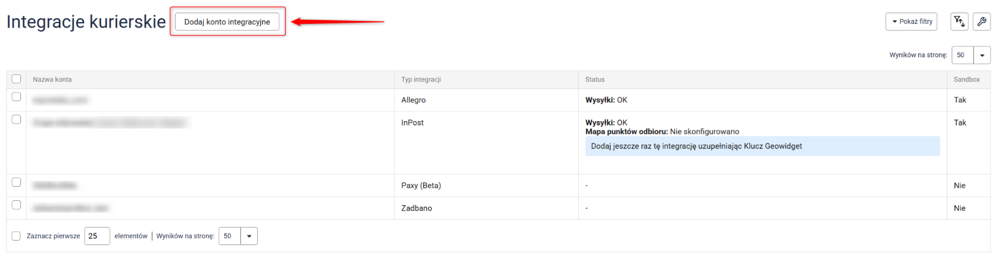Jeżeli masz więcej niż jedno konto InPost, musisz dodać Integrację kurierską - dla każdego konta osobno.